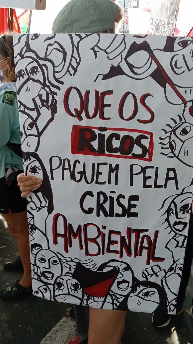 Nous voyons dans les pratiques des peuples autochtones et traditionnels ceux qui préservent réellement la biodiversité et les forêts mondiales, ceux qui retirent des tonnes de dioxyde de carbone de l’atmosphère, contribuant ainsi à réguler le climat, et qui rejettent la logique rentière du crédit carbone. Ceci, associé aux luttes et à la résistance menées par les populations pauvres des campagnes et des villes, réparties du nord au sud et d’est en ouest de la carte mondiale, même avec beaucoup d’humiliation et de difficultés pour garantir la conquête de leur pain quotidien, de leur tortilla, leur chapati ou leur beiju, se réinventent par le soutien mutuel et la solidarité lorsqu’ils voient leurs vies traversées par des événements climatiques extrêmes, produits par la cupidité et le profit des riches. La COP n’apporte aucune solution à nos problèmes, bien au contraire, c’est un organisme créé pour gérer la crise environnementale, mis en place par les mêmes secteurs qui gèrent la faim et la pauvreté dans le monde. Ainsi, nos urgences n’ont pas leur place à la COP. Les solutions à la crise climatique, environnementale et sociale existent déjà, maintenant vous et nous savons quelles elles sont et ce que nous devons faire.