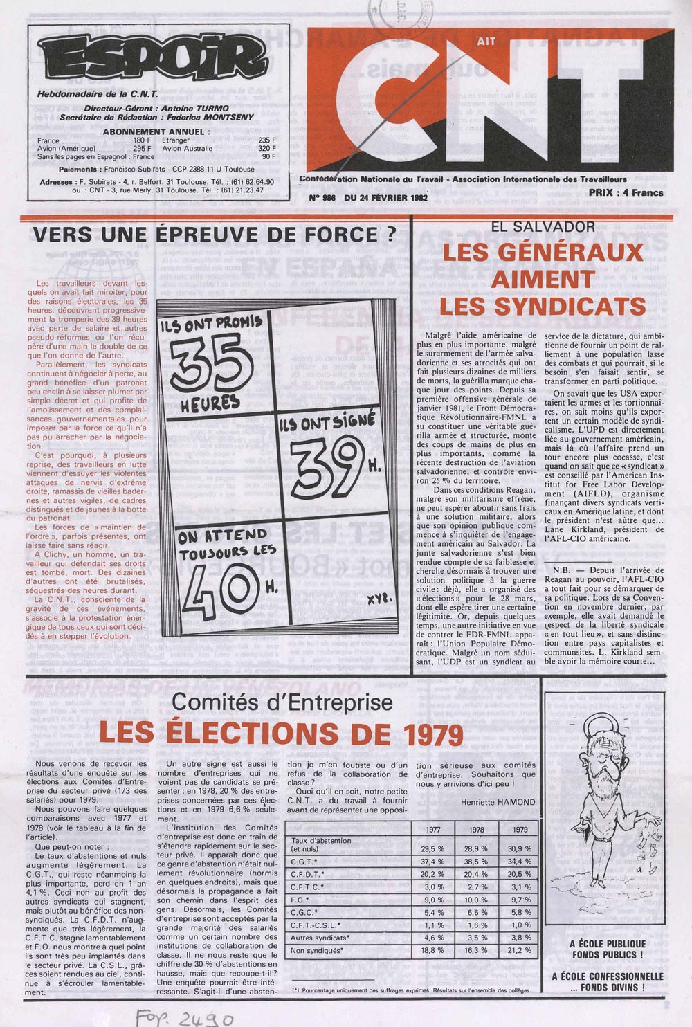Accueil > Editions & Publications > Espoir - CNT AIT > CNT AIT n°986 - 24 février 1982