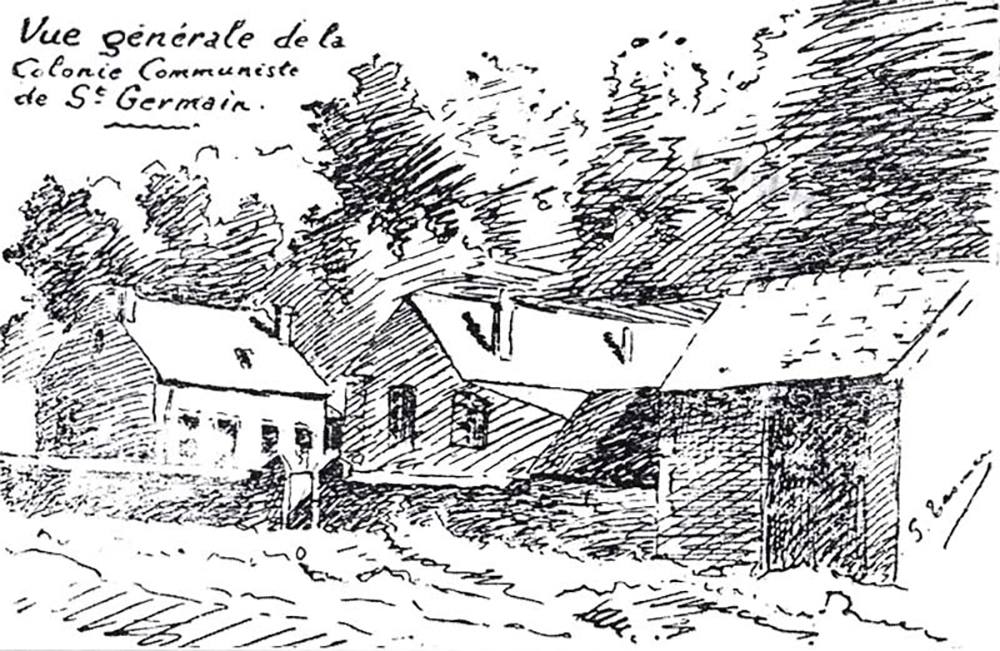 Dessin des bâtiments de la Colonie communiste de St-Germain-en-Laye. Milieu-libre créé par André Lorulot et Émilie Lamotte en 1906. Source : Cartoliste